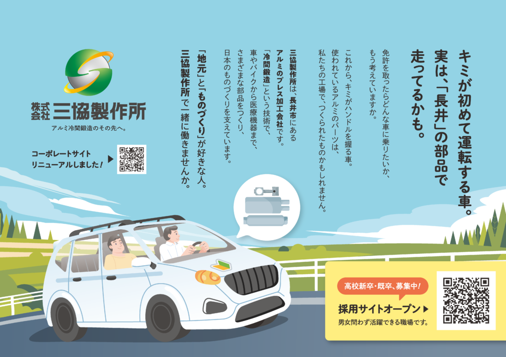 フラワー長井線をご利用の際は、ぜひ車内広告にもご注目ください。 三協製作所はこれからも、事業活動を通じて地域社会の発展と持続可能な未来に貢献してまいります。